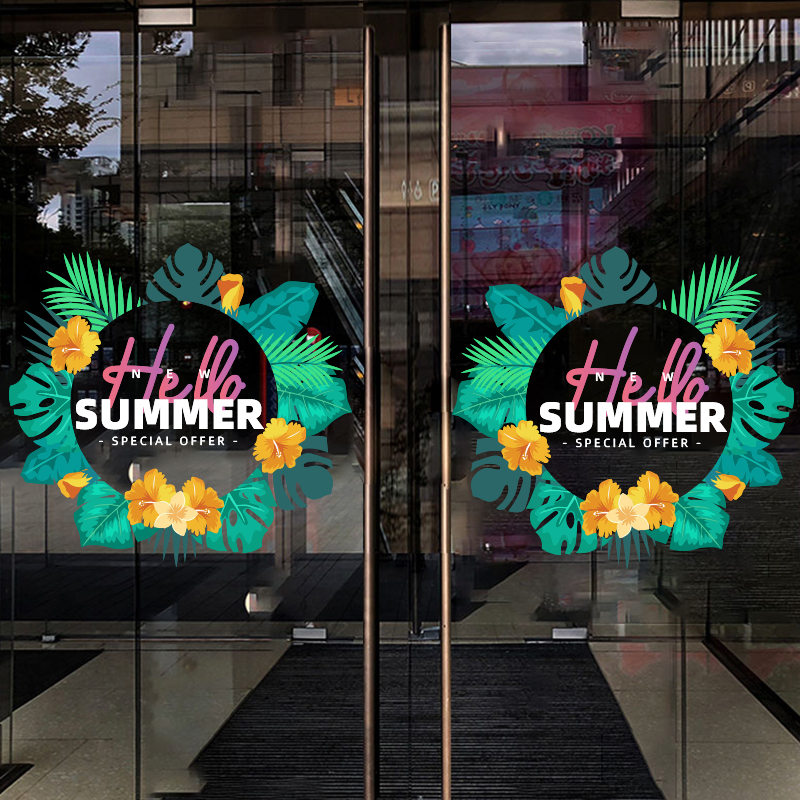 春夏季新品商场玻璃门橱窗装饰贴画服装鞋包店铺布置静电贴纸热门设计联盟服务商