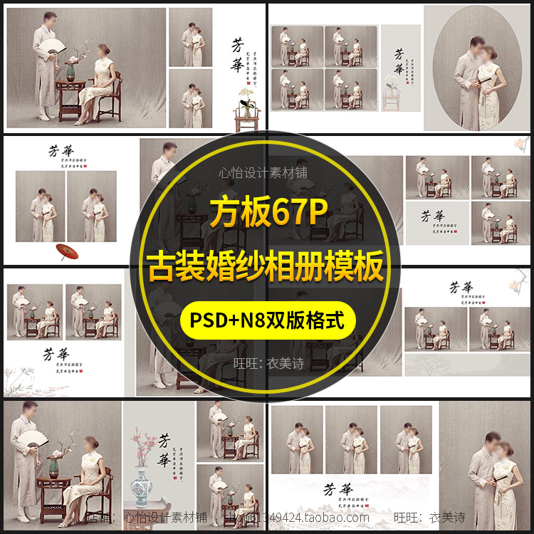 N8古装婚纱相册模板PSD方版影楼2020摄影复古方册沛ps设计素材热门设计联盟服务商