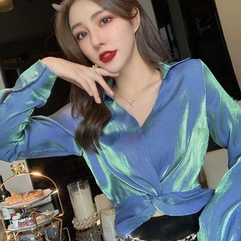 春季女上衣轻熟2021年新款气质名媛V领收腰长袖衬衫设计感小众潮热门设计联盟服务商