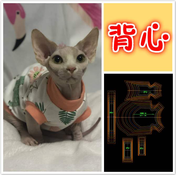 无毛猫衣服纸样德文猫背心四脚衣图纸diy斯芬克斯打版手工宠物热门设计联盟服务商