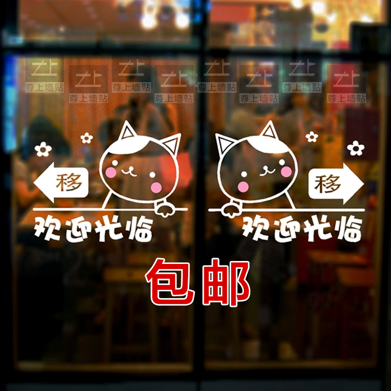 店铺玻璃门贴纸移门欢迎光临左右头移字门贴推拉们提示标志标识热门设计联盟服务商