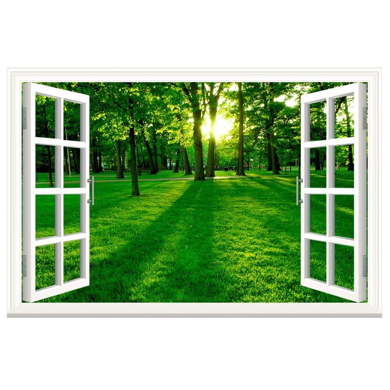 3D假窗自粘贴纸床头壁纸卧室壁画影视宿舍墙壁温馨风景装饰贴画。热门设计联盟服务商