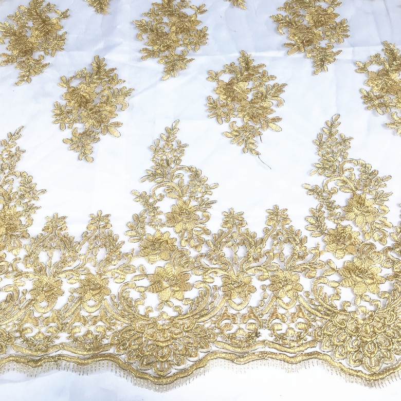 金黄金色车骨蕾丝车骨满幅刺绣蕾丝面料婚纱辅料车骨花边绣花布料热门设计联盟服务商