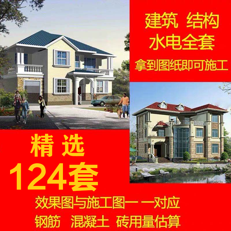 别墅图纸农村自建房设计图二层三层CDA建筑结构水电施工图效果图